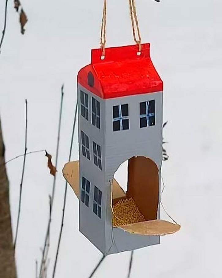 2) Годівничка з упаковки з-під молока