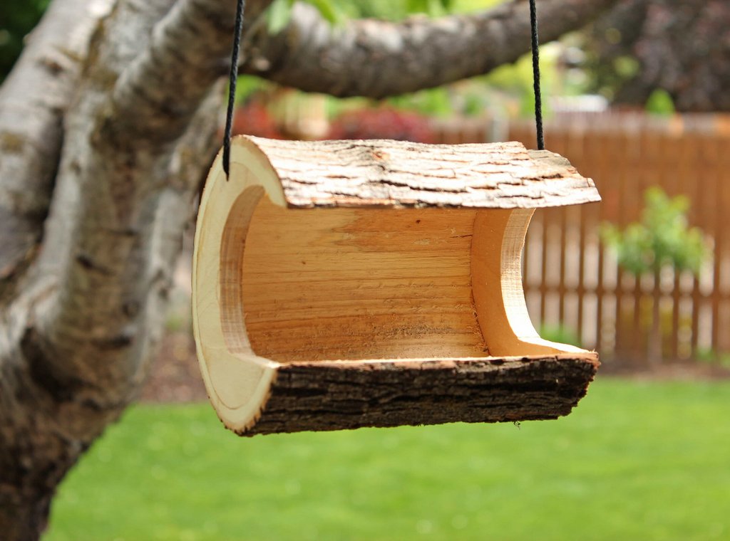 Що потрібно: шматок сухої колоди, свердло/стамеска, гачок або мотузка.