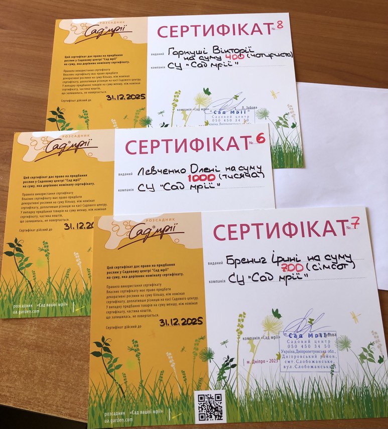 Якщо ви шукаєте подарунок, який не просто лежатиме на полиці, а приноситиме радість увесь рік, — зверніть увагу на подарунковий сертифікат від «Саду мрії». Це чудовий спосіб порадувати друзів, рідних або колег, які люблять рослини, створюють комфортний простір навколо себе або просто мріють про свій зелений куточок для відпочинку душі.
