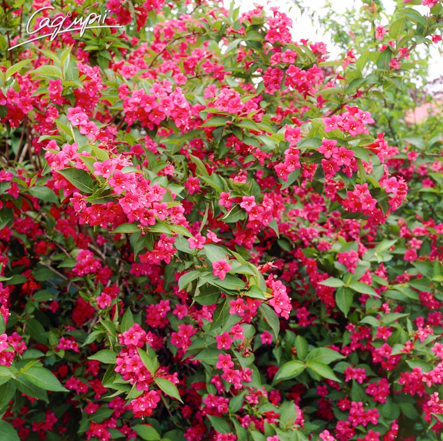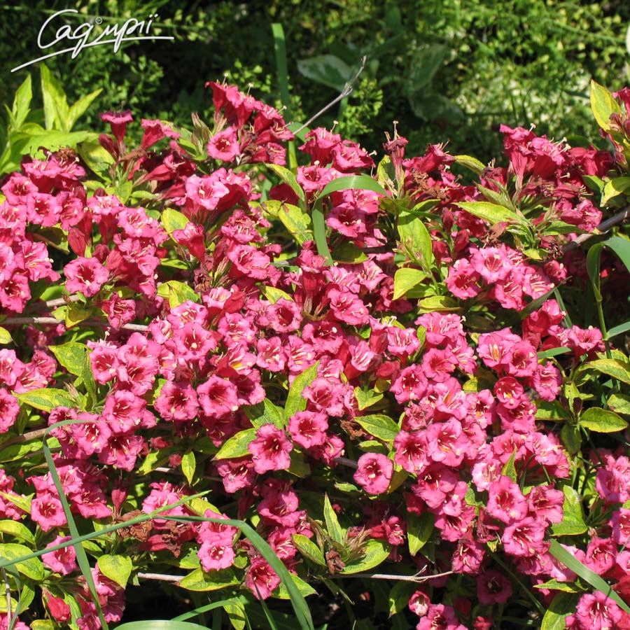 Найпоширенішими у садах є вейгела квітуча (Weigela florida) та її численні гібридні сорти. Вони чарують пишними дзвоникоподібними квітками, що розпускаються масово й одночасно — ніби фонтан кольору серед зелені!