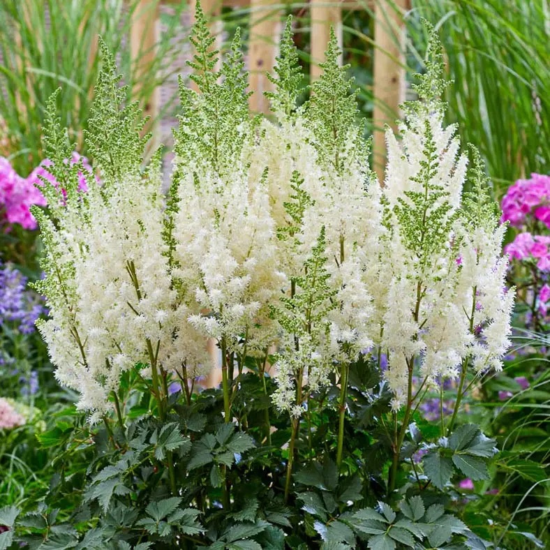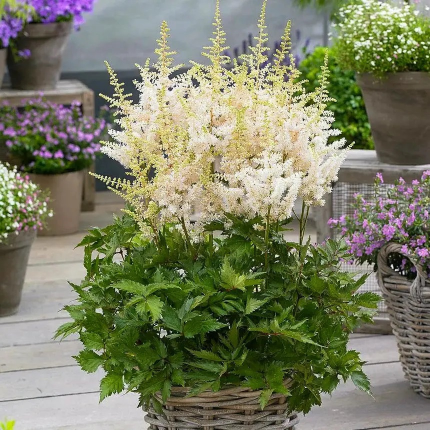 Астильба Арендса Close Harmony ® PBR - багаторічна декоративна рослина має різне блискуче, гладке, темно-зеленим листям, витонченої ажурної форми. Суцвіття пухнасті, великі, насичено біло-кремового кольору. Неначе пухнасті хмаринки на витончених стеблах висотою до 25 см. Висота рослин 70-80 см. Період цвітіння липень – серпень. Дуже декоративна та ніжна астильба повинна бути в кожному саду.