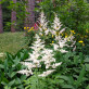 Астильба Японська 'Deutschland' - багаторічна трав'яниста рослина: це густо покритий листям кущ з темно-зеленим листям. Висота рослини 50-60см. Квітки - білі пухнасті ромбічні щільні суцвіття-волоті висотою до 30 см. Цвіте в червні-липні. Астильба відрізняється високою зимостійкістю, практично не уражається хворобами і шкідниками. Може рости в місцях з досить високими грунтовими водами і переносить навіть застій води, а ось довгострокову посуху астильба не перенесе. Бідний грунт, відкритий сонцепік і відсутність дощів можуть погубити рослину. Посадка групою прикрасить квітник будь-якого стилю в тіні хвойних або листяних дерев, тим більше, що рослини добре себе почувають в загущеній посадці. Відмінно доповнить міксбордер біля фонтану або водойми. Традиційні сусіди астильби - хости, папороті.