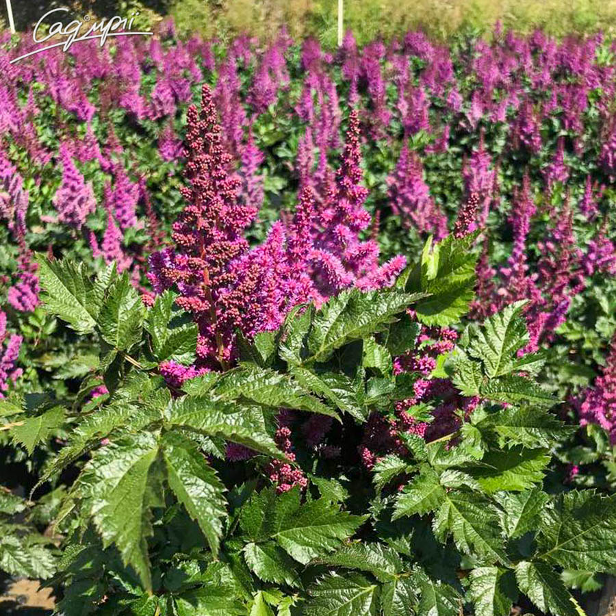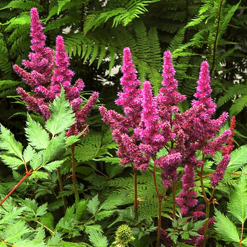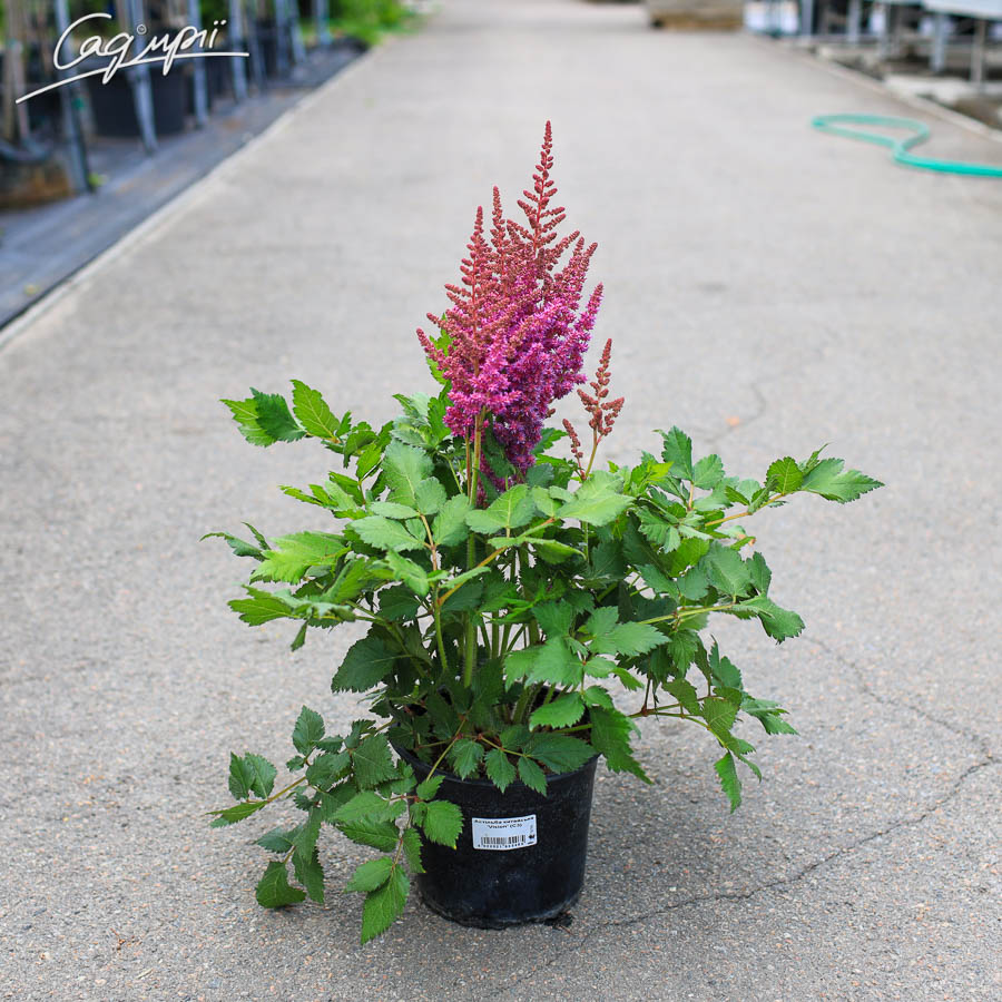Астильба Китайська 'Vision®' - багаторічна трав'яниста рослина. Густо покритий листям кущ з темно-зеленим, з бронзовим відливом, блискучим листям. Висота рослини до 25-30см. Квітки яскраві, рожево-бузкового кольору в волотистому суцвітті. Цвіте в червні-липні. Астильба відрізняється високою зимостійкістю, практично не уражається хворобами і шкідниками. Може рости в місцях з досить високими грунтовими водами і переносить навіть застій води, а ось довгострокову посуху астильба не перенесе. Бідний грунт, відкритий сонцепік і відсутність дощів можуть погубити рослину. Посадка групою прикрасить квітник будь-якого стилю в тіні хвойних або листяних дерев, тим більше, що рослини добре себе почувають в загущеній посадці. Відмінно доповнить миксбордер біля фонтану або водойми. Традиційні сусіди астильби - хости, папороті.