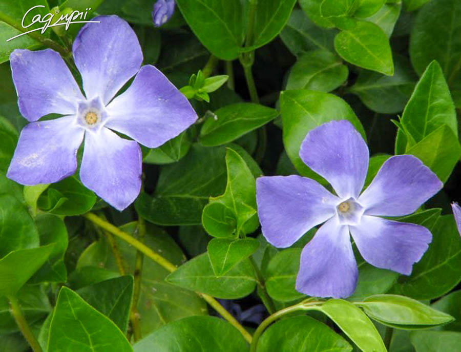 Багаторічна вічнозелена рослина, що стелиться, з гіллястим стеблом. Листя цілісне, довгасте, зверху блискуче, темно-зелене, шкірясте, залишається зеленим до наступної весни. Квітки одиночні, лійчасті, блакитні. Цвіте в травні-червні.