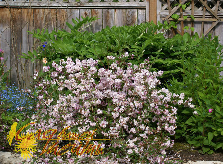Листопадний невеликий чагарник зі злегка звисаючими бічними гілками. У дорослому віці досягає 2,5 м у висоту і ширину. Квіти зсередини білі, зовні - з рожевою смужкою, окремі квітки-дзвіночки відкриті, діаметром 2 см, зібрані в короткі суцвіття, цвітіння в червні-липні. Листя ланцетно-довгасте, довжиною 6-8 см, шорстке і зморшкувате, темно — зелене. До грунту невимоглива, віддає перевагу рівномірно зволоженим, родючим, вапняним грунтам. Злегка притінені від полуденного сонця місця розташування. Морозостійка, але в суворі зими може підмерзати. Використовують як солітер, в змішаних живоплотах, в садах і парках.