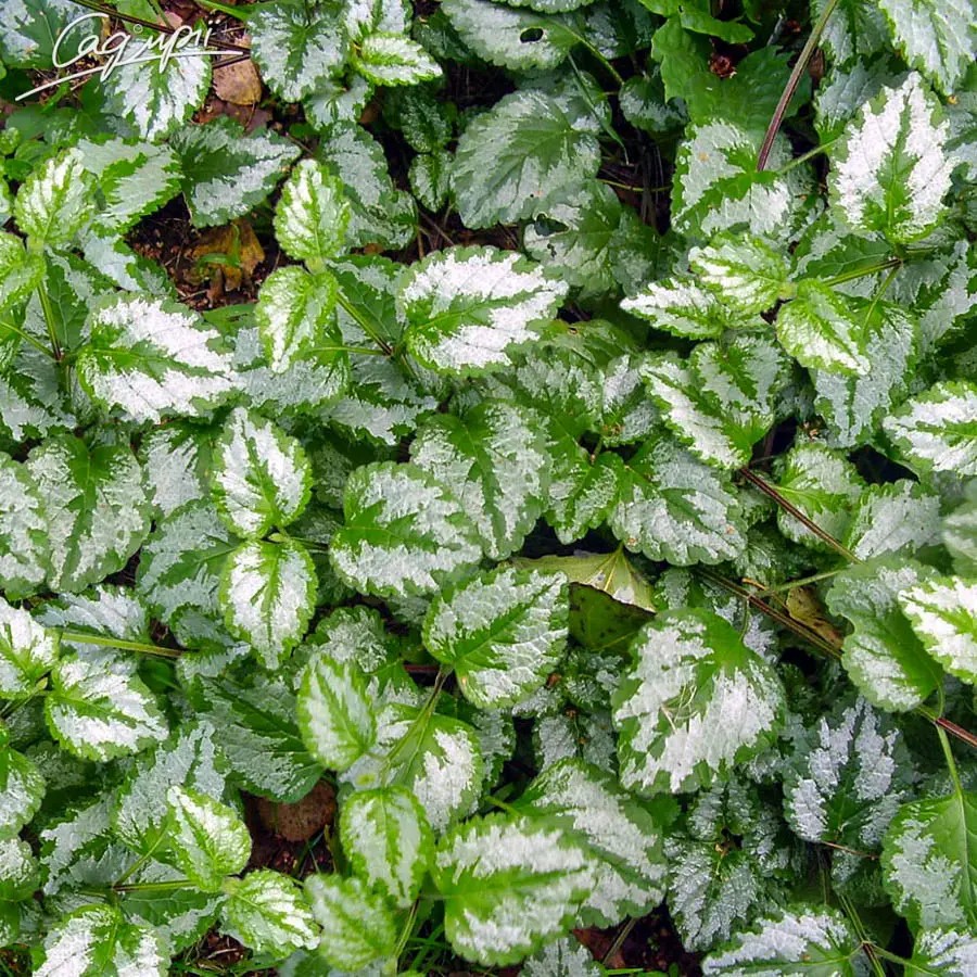 Глуха кропива крапчаста - багаторічний почвопокровник, один з самих затребуваних на тінистих ділянках. Стебла довгі, покриті м'якими волосками, розгалужені, наростають від підстави пухнастим кущем висотою 20-30 см Темно-зелене листя зі сріблястою смугою по центру, зі світлими плямочками або крапками, овальної форми, зморшкуваті, з зубчиками по краю. Нижні листя більше, ніж верхні. Квіти, дзвонові форми, зібрані по 10 штук, знаходяться в пазухах верхніх листків. Цвіте в кінці травня - червні, залучаючи ароматом бджіл і метеликів.
