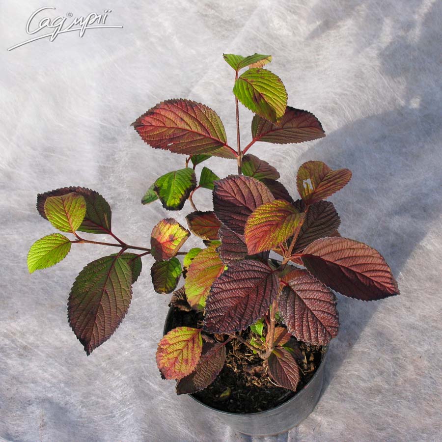 Листопадний розлогий, великий чагарник, росте швидко. У дорослому віці у висоту і ширину становить 3-4 м. Численні білі квітки зібрані в щитковидні суцвіття; цвіте в травні-червні. Листки світло-зелені, з нижньої сторони сіро-зелені, опушені, осіннє забарвлення винно-червоне або темно-червоне. Віддає перевагу свіжим, вологим, родючим, від слабо кислих до сильно лужних, вапняним ґрунтам. Світлолюбна, виносить півтінь, потребує руху повітря, інакше може сильно постраждати від попелиці. Дуже морозостійка і помірно вологолюбна рослина.