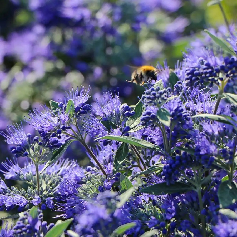 Каріоптеріс кландонський 'Kew Blue' притягає в сад метеликів.