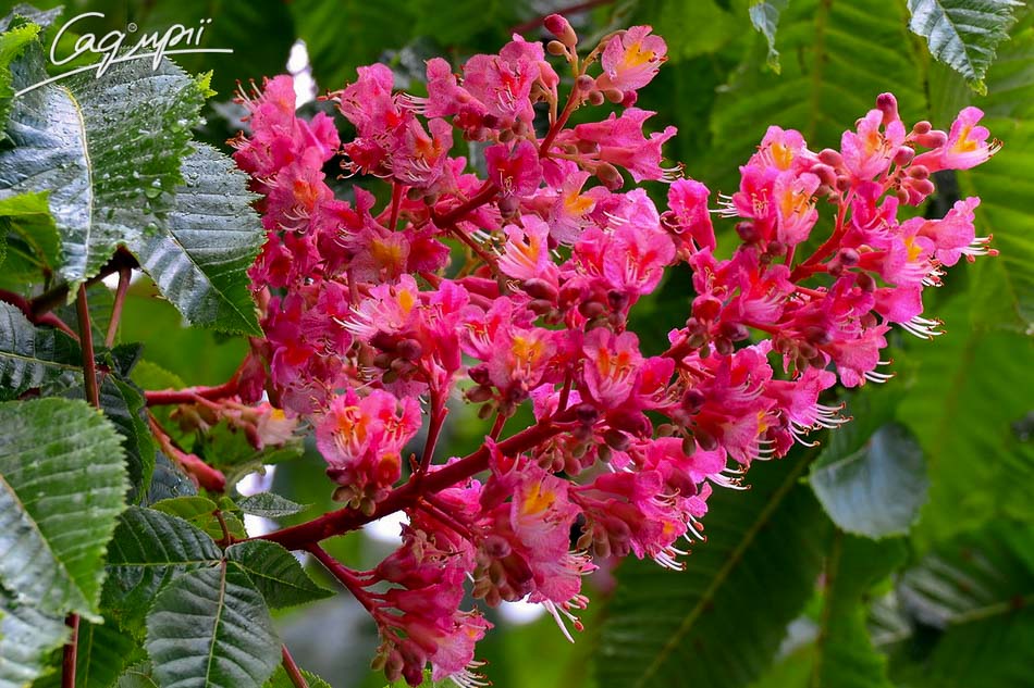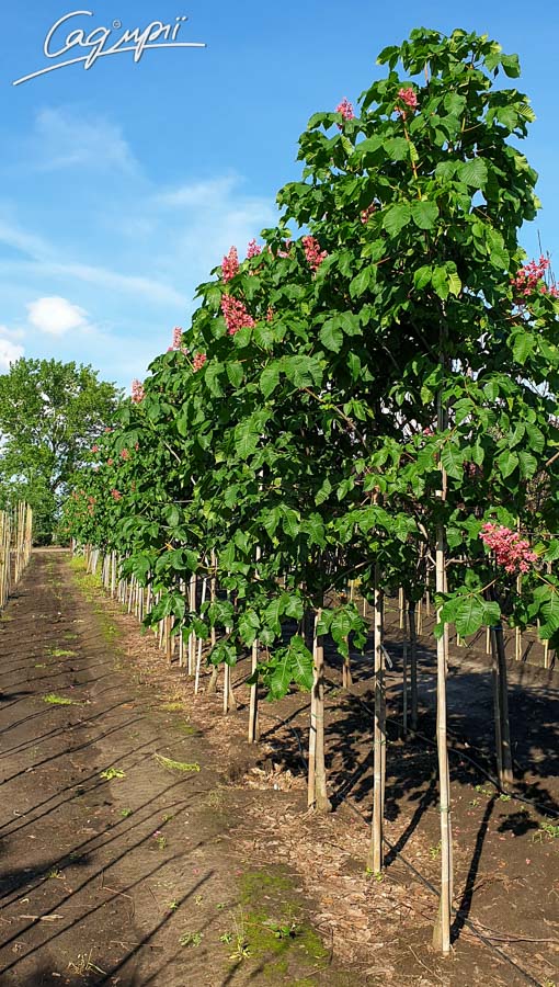 Дерево з відмінними декоративними властивостями. Висота дорослої рослини 10-15 м, ширина 8-12 м. Річний приріст у висоту 20-25 см, в ширину 15-20 см. Криваво-червоні квітки зібрані в волоті довжиною 25 см, цвіте в кінці травня, зацвітає після 10 років. Віддає перевагу сонцю або півтіні, в той же час тіньовитривале.