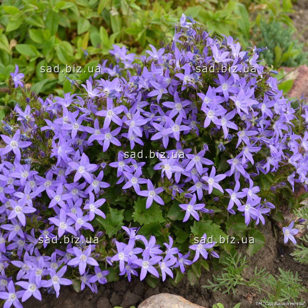 Дзвіночок Пожарського - багаторічник, низькорослий (до 20 см), в той же час - рясно і довго квітучий. Батьківщина дзвіночків – гірські райони Балкан. Листочки округлі, зубчасті, невеликих розмірів зеленого кольору, майже не видно через синьо-фіолетові кольори. Цвітіння дуже рясне і тривале, з травня по вересень. Необхідно пам'ятати, що потрібно вчасно зрізати квітконоси, що відцвіли. Дуже декоративний багаторічник подушковидної форми, з пагонами, що стеляться. Довжина пагонів може досягати 80см. Може використовуватися як ґрунтопокрівна рослина: ця рослина порадує таким рясним кольором, що виглядає немов синій килим. Віддає перевагу нейтральним або слаболужним грунтам. Рекомендується для одиночних та групових посадок на клумбах, рабатках та міксбордерах.