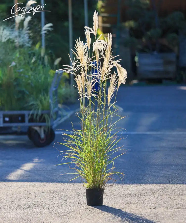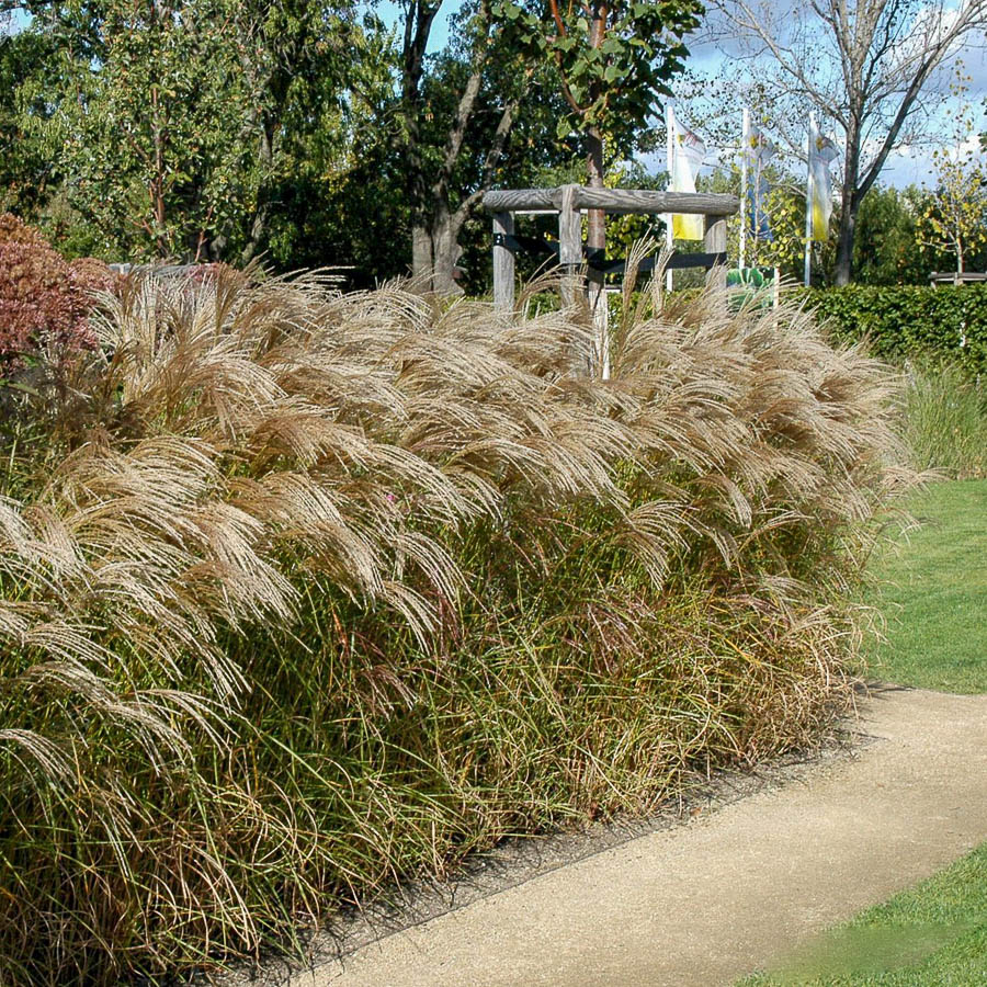 Посадка міскантусу здійснюється навесні, коли прогріється ґрунт – з кінця березня до середини травня. Міскантуси теплолюбні, тому висаджувати їх потрібно на ділянках, що добре освітлюються і прогріваються сонцем, захищених від холодного вітру. Але ще більше, ніж тепло, міскантуси люблять воду, саме тому вони віддають перевагу вологим, родючим прибережним ділянкам. Якість ґрунту для міскантуса великого значення не має, але найгірше вони ростуть на пісках та важких глинах. Купуйте дорослі саджанці: у цієї рослини вегетаційний період дуже довгий, оскільки в зріст теплолюбний міскантус рушає лише тоді, коли температура повітря досягне 25 ºC, тому молоденький саджанець просто не встигне прижитися і зміцнітися до настання холодів. У дорослого саджанця запас міцності більший, і він при хорошому укритті зможе безболісно пережити навіть холодну зиму. У посадкову яму, яка має бути трохи більше за обсягом, ніж коренева системи саджанця, поміщують шар родючого ґрунту, потім опускають у нього саджанець і заповнюють порожнечі землею, поступово її утрамбовуючи. Після посадки міскантус рясно поливають.