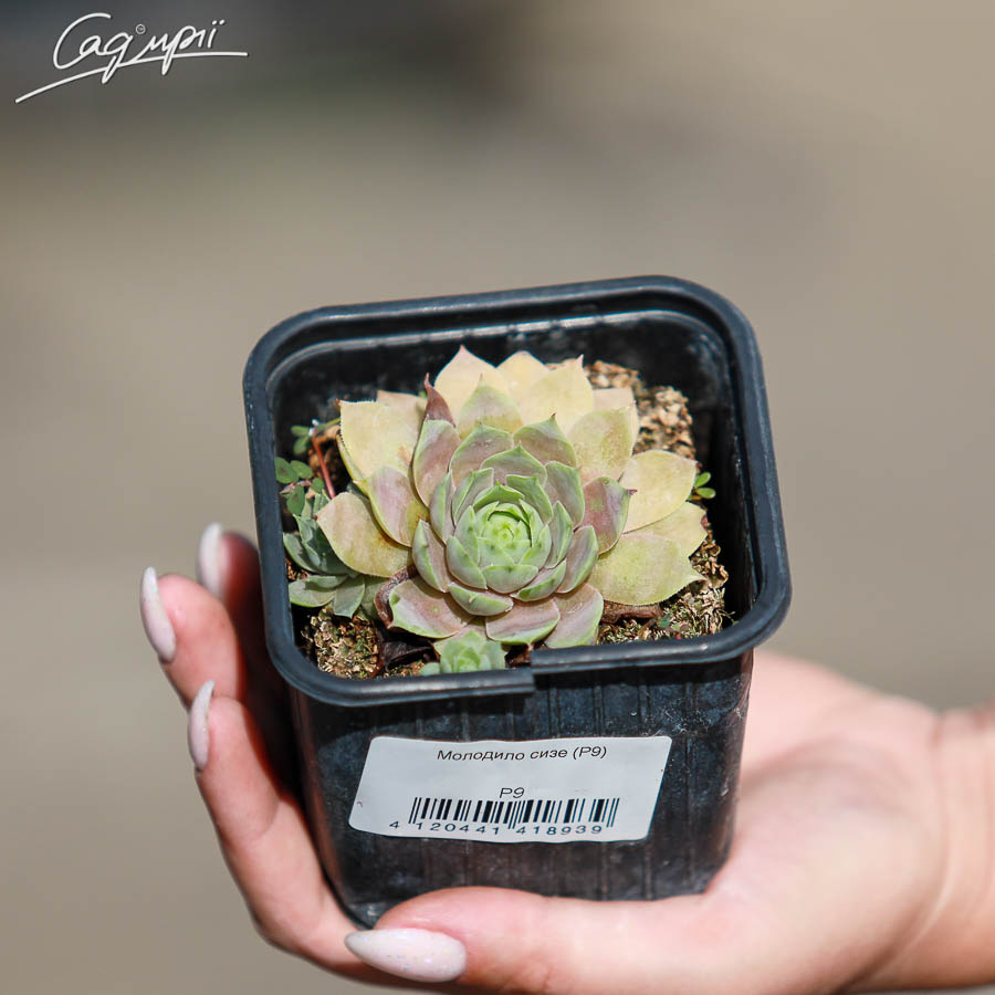 Молодило сизе - дуже декоративна та невибаглива рослина. Це вічнозелена багаторічна рослина, що утворюють килим з розеток з гладким, м'ясистим листям, яке красиво загострене. Цікавий сорт з гарним забарвленням - сріблясто-зелене листя з бордовою серединкою. Восени та взимку ці кольори стануть більш насиченими, завдяки чому молодило ефектно виділятиметься на снігу. Колір квітки рожевий, період цвітіння приблизно з червня до липня. Висота рослини 5-10 см. Молодила – чудові посухостійкі рослини для саду, підходять для сухих кам'янистих місць. Це рослини, які можна використовувати при посадках на кладовищах, так як воно не потребує особливого догляду. Відмінна ґрунтопокривна рослина. Можна також використовувати в посадках між бруківкою чи бордюрах. Підходять для рокаріїв, саду каміння, може рости у тріщинах стін. Висаджується у чаші, вазони, контейнери та інші ємності. Компаньйонами до молодил можна використовувати заячу капусту, очитки, живучки, ломикамені.