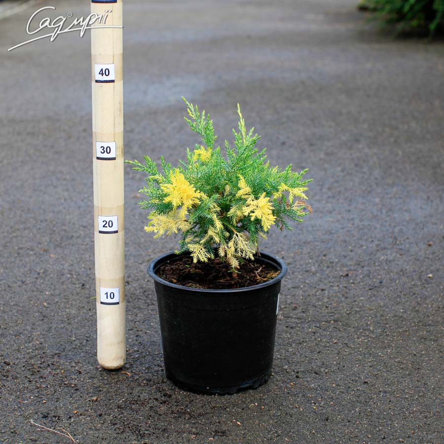 Новий сорт ялівцю віргінського. Крона красива, розлога, приземкувата, пагони спочатку ростуть горизонтально, пізніше - спадаючі. Доросла рослина досягає висоти 3 - 4м, при діаметрі 4-6м. Хвоя лускоподібна, блакитно-зелена з кремово-жовтими цяточками. Швидкість росту помірна. На сонці не обгорає, не випріває. Світлолюбний, морозостійкий, стійкий до весняних опіків, стійкий до міських умов. Не виносить застою води, засолення і сухості грунту.
