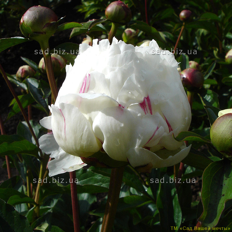 Півонія трав'яниста 'M-me De Verneville'. Півонії - дуже популярні і улюблені в наших садах квітучі рослини. Вражають величезним сортовим різноманіттям, дуже довговічні. Різноманітність сортів півонії дозволяє використовувати їх в садах будь-якого стилю.
