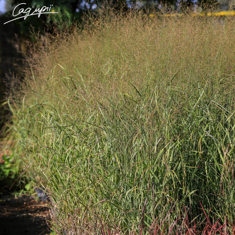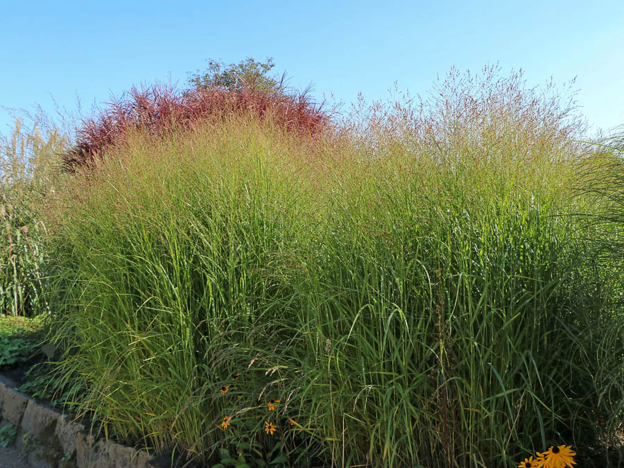 Просо прутоподібне 'Strictum' - теплорослий злак, коріння утворюють щільну дернину, швидко розростається. Листя яскраво-зелені, лінійні, плоскі, шорсткі, осінні жовтіють. Кущ компактний, прямостоячий не розвалюється. Висота рослини - до 180см.дуже швидко розростається, займає велику площу, при посадці потрібно огорожу для коренів. Волоті зеленувато-бежеві, дуже ефектно підносяться над яскраво-зеленим листям. Віддає перевагу сонячним відкритим місцям. Добре розвивається і в півтіні. До ґрунтів не вимогливо. Може витримати як посуху, так і тимчасове затоплення.