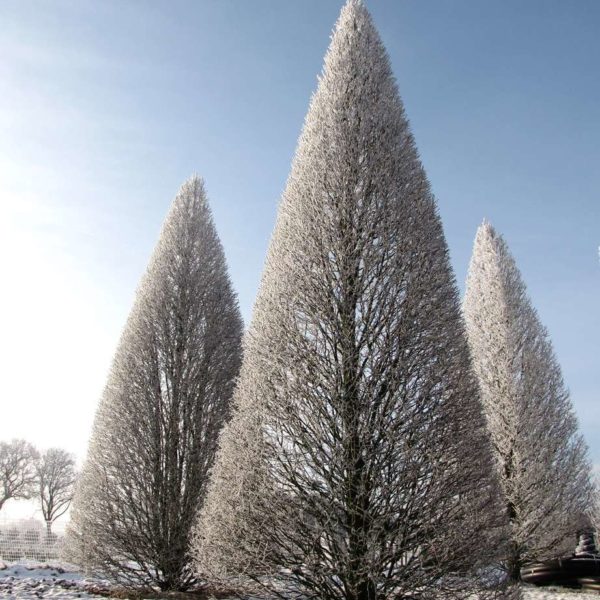 ВЗРОСЛЫЕ ГРАБЫ СОРТА 'FASTIGIATA' отличаются гармоничной конусовидной кроной, которая выглядит эффектно вне зависимости от сезона года! Идеальную крону саженцев можно поддерживать за счет обрезки.