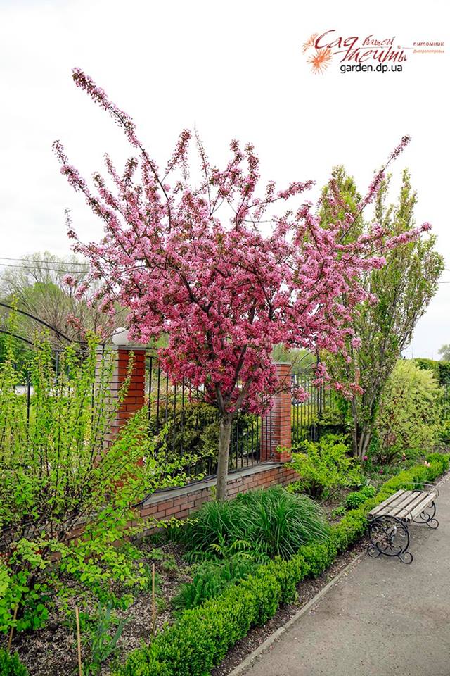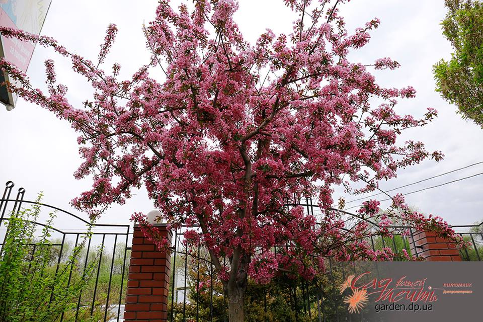 Декоративная яблоня 'Royalty' - небольшое дерево, вертикальнорастущее, с возрастом более широкое, высотой 4-6м, шириной 4-5м. Листья блестящие, тёмно-красно-коричневые, позднее тёмно-зелёно-красные, края острозубчатые, осенью коричнево-красные. Цветет обильно, зачастую - до распускания листьев. Бутоны при распускании малиново-красные. Плоды рубиново-красные, 1,5 см в диаметре, долго сохраняются на дереве. Предпочитаемые места посадки: солнце или полутень. Морозостойка, устойчива к городским условиям. Рекомендуется для пригородного озеленения и небольших садов.