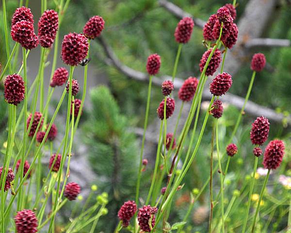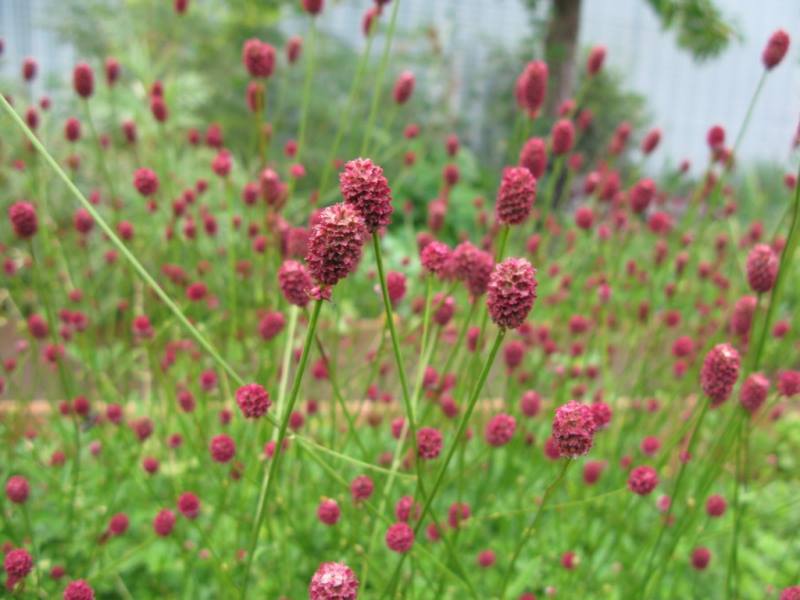 Кровохлебка лекарственная - эффектное многолетнее растение для цветника в природном стиле. Высаживается на солнечных и полутенистых местах. Высота 40-50 см. Цветы розово-малиновые, шаровидные на высоких цветоносах. Цветение в июле-августе. Хорошо комбинируется со злаками, котовниками, вероникой, шалфеем и луками.