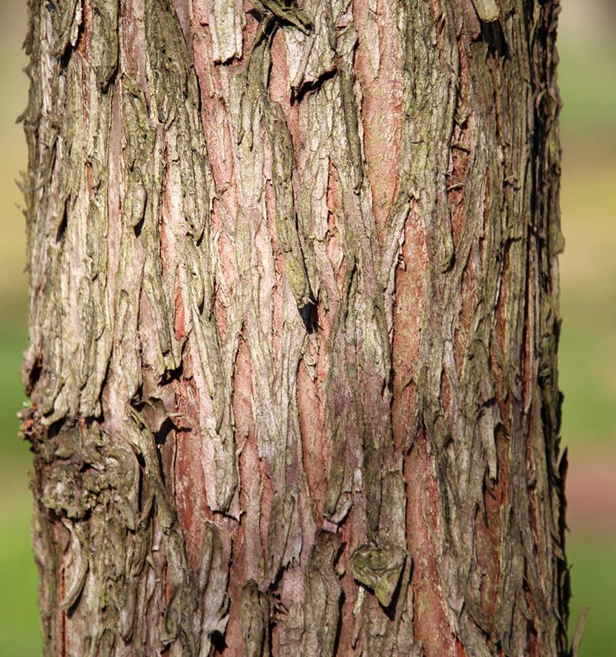 Кора у молодых ветвей красно-коричневая, старая кора - красно-коричневая с сероватым оттенком. Хвоя игольчатая, светло- зелёная, осенью хвоинки опадают вместе с короткими побегами. Осенняя окраска от жёлтой до красно- коричневой.