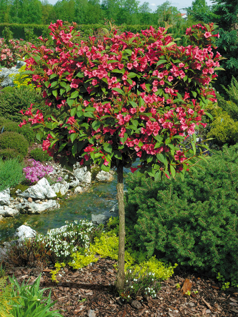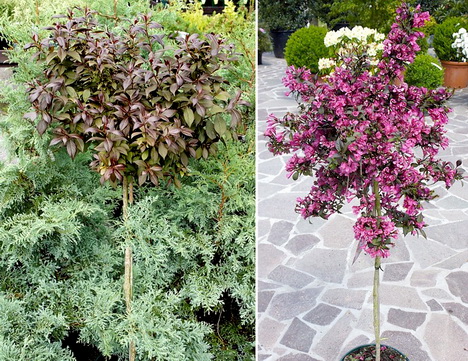 В последнее время в моду входят лиственные и хвойные растения на невысоких штамбах. Это, как правило, невысокие цветущие или декоративно-лиственные кустарники, можжевельники и карликовые сосны и ели. Их главная особенность - ровный ствол без единой ветви, который завершается пышной кроной. Таким образом создается оригинальная форма приподнятого можжевельника или кустарника необычного вида.