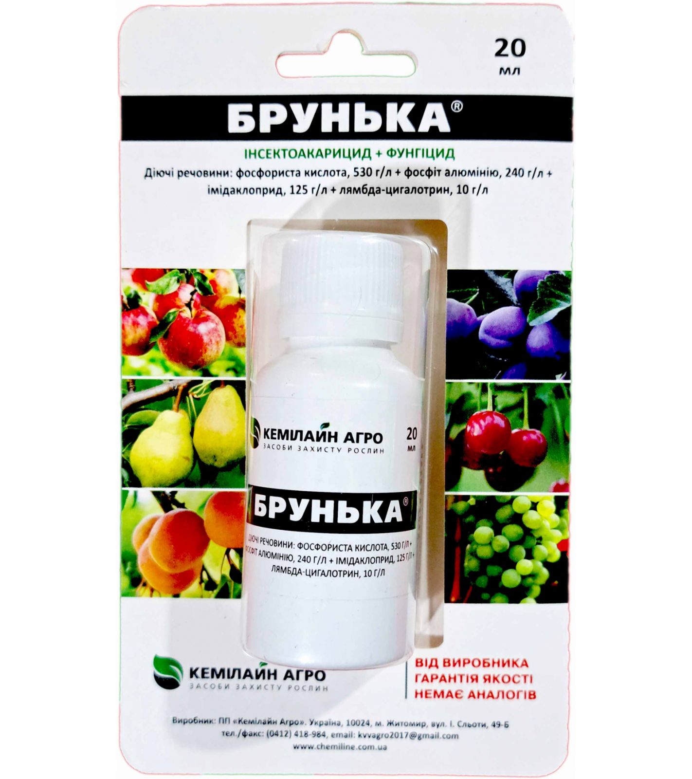 “БРУНЬКА” - универсальный препарат для борьбы с болезнями, клещами и вредителями, зимующими на деревьях и ягодных кустах. Обладает длительным периодом действия, истребляет паразитов еще на стадии личинок.