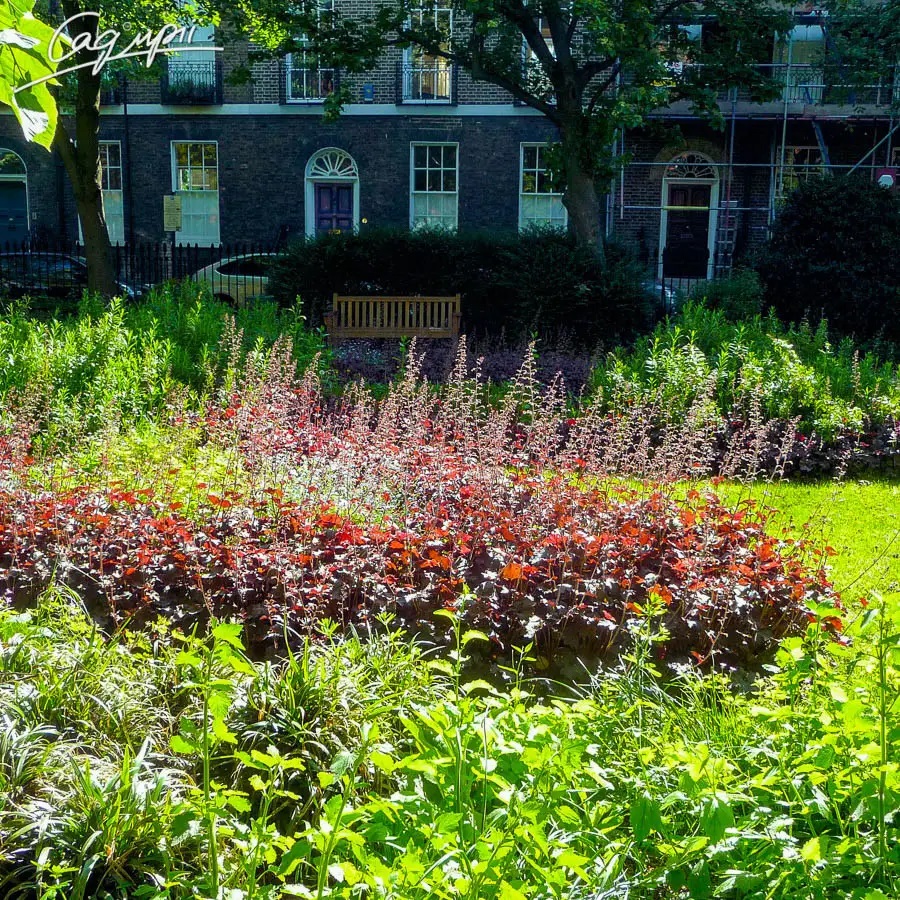 Гейхера 'Palace Purple' - декоративное вечнозеленое многолетнее растение, высотой 30 см, а шириной 50 см. Красивые яркие листья темно-бордового цвета, диаметром 8 - 13 см. Наружная сторона листа пурпурного цвета, а внутренняя - свекольного цвета. Мелкие кремово-бежевые цветы в виде маленьких колокольчиков, собраны в метельчатые соцветия, которые расположены на прямых цветоносах длиной до 45 см и возвышаются над листьями. Цветет с начала июня до середины августа.