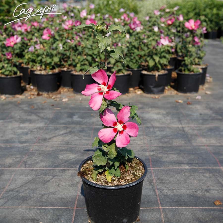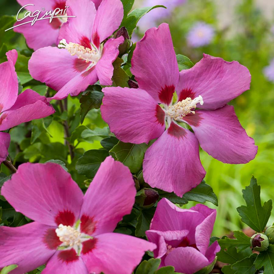 Листопадный кустарник, ветви вертикально расположенные, крепкие. Быстро растущий. В взрослом возрасте достигает в высоту 2,5 м. Цветёт в августе-сентябре. Цветки сине-красные, с маленьким тёмным пятном в середине, простые, диаметром около 12 см. Листья напоминают листья хризантемы, яйцевидные, 3- лопастные, средне-зеленые, распускаются поздно, осенью желтые. Плоды коричневые коробочки. Плодородные, свежие или умеренно сухие, песчаные суглинки, от слабо кислых до щелочных, на слишком бедных почвах цветет плохо. В молодом возрасте на зиму укрывать, обрезка способствует увеличению цветков. Светолюбива. Требует защищенные местоположения. Используется как солитер в садах и парках, садах на крышах, в кадках, рабатках.