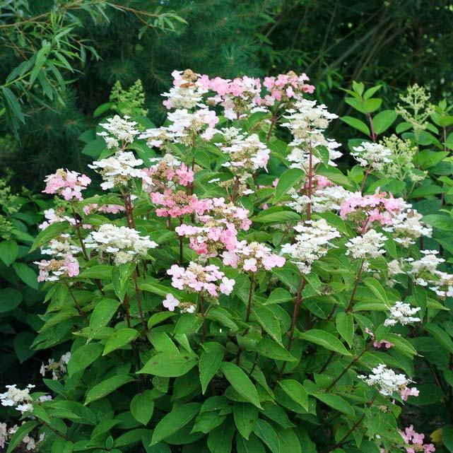Данный сорт отличается декоративным цветением с мая по сентябрь: в это время на растении красуется множество соцветий-метелок конусовидной формы. В начале цветения лепестки окрашены в бело-кремовый, по мере цветения приобретают розоватый или вишневый оттенок. Преобладают фертильные цветки.