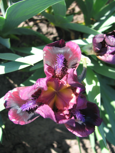 Стандарты тёмно-красно-фиолетовые, цвета фуксии. Фолы тёмно-фиолетовые, почти чёрно-вишнёвые, со светлой малиновой каймой. Красивый и эффектный сорт. Цветение среднего срока.