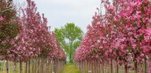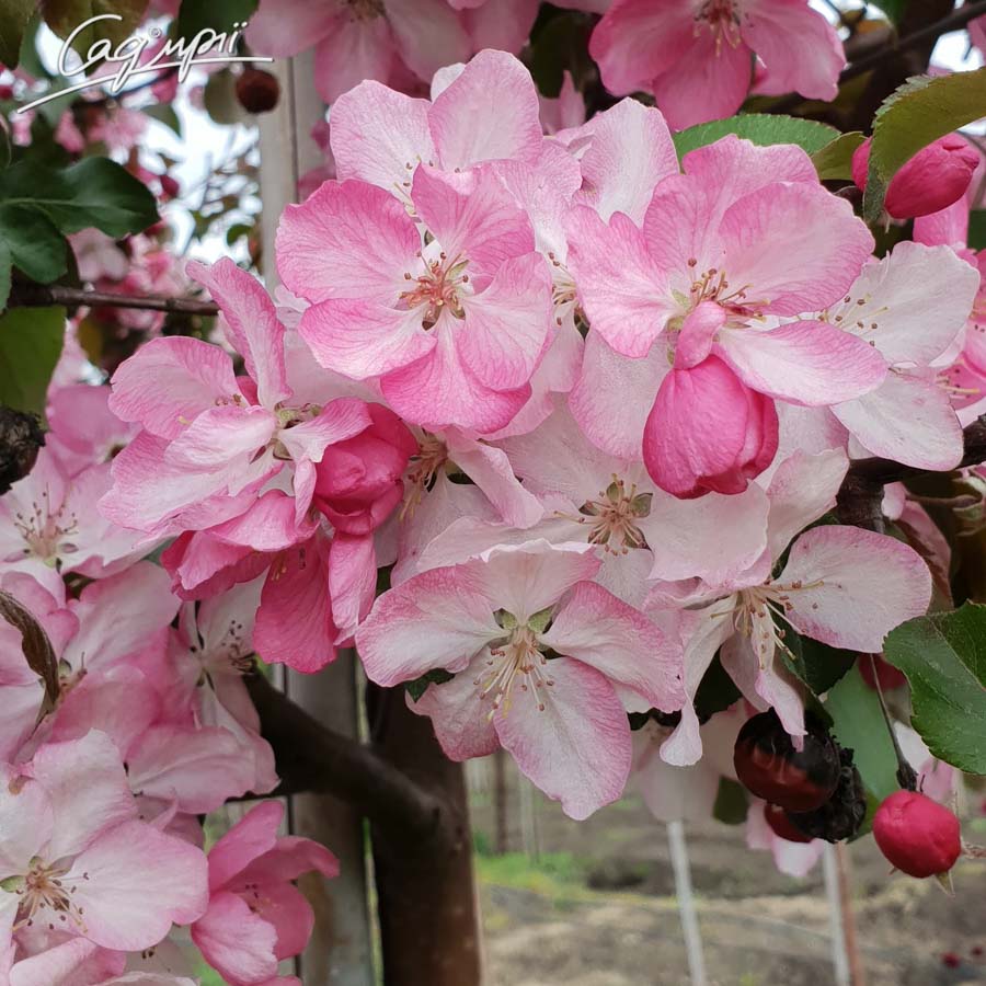 Небольшое вертикальнорастущее дерево, высотой 5 - 6м, шириной 4 - 5м. Крона широкопирамидальная, позже широкоокруглая. Листья при распускании коричнево - красные, летом тёмно - зелёные с коричневатым блеском. Цветет обильно в середине мая, цветочные почки карминно - красные, цветки розово-красные. Плоды - слегка продолговатые оранжево-красные яблочки размером с вишню, очень долго сохраняются на дереве. Солнцелюбива. Зимостойка. Корневая система стержневого типа до 1,5 м. очень толерантна к размещению рядом других растений. К почвам нетребовательна, предпочитает среднетяжёлые, достаточно плодородные, не слишком сырые, от кислых до нейтральных. Морозостойка, устойчива к городским условиям. Рекомендуется для пригородного озеленения и небольших садов.