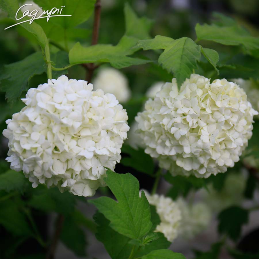 Листопадный раскидистый, крупный кустарник, с возрастом наружные ветви слегка свисают вниз; растет быстро. Во взрослом возрасте в высоту и ширину составляет 3-4 м. Многочисленные белые, шаровидные соцветия, при отцветании слегка розовые, диаметром 8 см; цветет в мае-июне. Листья похожи на кленовые, 3-5- лопастные, 8-12 см длиной, светло-зеленые, с нижней стороны серо-зеленые, опушенные, осеняя окраска винно-красная или темно-красная. Предпочитает свежие , влажные, плодородные, от слабо кислых до сильно щелочных, известковые почвы. Светолюбива, выносит полутень, нуждается в движении воздуха, иначе может сильно пострадать от тли. Морозоустойчива, ветроустойчива, образует корневые отпрыски. Выносит радикальную омолаживающую обрезку. Пригодна для выгонки. Используют как солитер в садах и парках, смешанных живых изгородях, место ей найдется в каждой усадьбе.