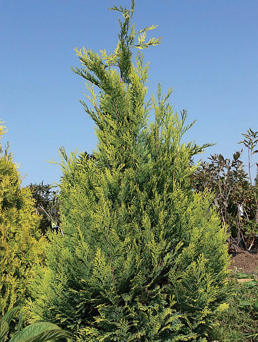 Вечнозелёное колоновидное или узко-конусовидное дерево с вертикальными плоскими ветвями и плотной кроной. Максимальная высота 6-8 м., ширина 2-3 м. Годовой прирост в высоту 15-20 см., в ширину 5-10 см. Хвоя чешуйчатая, при распускании золотисто-жёлтая, позднее жёлто-зелёная. Корни поверхностные с большим количеством тонких корней. Растёт на всех культивируемых, не слишком сухих садовых почвах, оптимально развивается на почвах от свежих до влажных, богатых питательными веществами, песчано-глинистых почвах, кислых или щелочных, переносит известкование. Морозостоек, очень теневынослив, требует защищённого от ветров места. Используется как солитерное растение, группами, аллеями, в качестве живой изгороди.