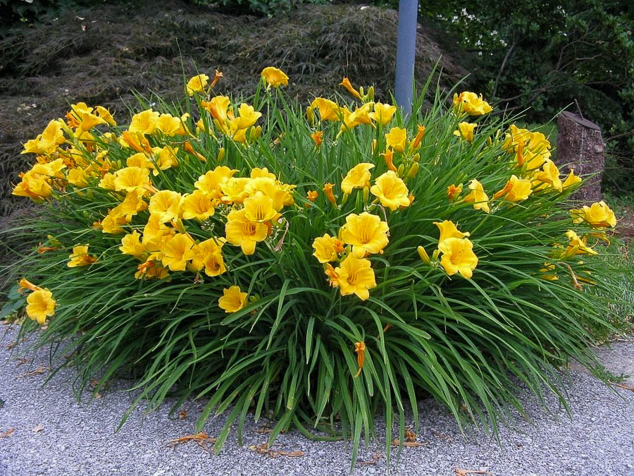 Полив нужен обильный, но редкий, в самое засушливое время лета. Поливать так, чтобы вода доходила до всасывающих корешков, располагающихся на периферии корневой системы. Конечно же, молодые, недавно посаженные кустики следует поливать достаточно часто – так, чтобы корни постоянно находились в слегка влажном состоянии. Это особенно актуально для лёгких, песчаных почв, которые быстро и легко пересыхают. Вопрос с подкормками решают в каждом случае индивидуально. Только что посаженный в плодородную тяжёлую землю маленький кустик лилейника можно оставить в покое до следующего года. И, наоборот, взрослый, разросшийся куст в начале вегетации на песчаной почве просто необходимо подкормить полным минеральным удобрением. Общие рекомендации по подкормке: в мае следует подкармливать азотосодержащими удобрениями, например, мочевиной. Во время подготовки к цветению следует подкормить комплексным удобрением, например, Кемирой. Землю вокруг кустиков лучше всего замульчировать скошенной травой, торфом или сосновой корой. Этим достигается уменьшение роста сорняков, меньший нагрев почвы в жаркие дни и лучшее удержание влаги. После окончания цветения следует убирать отцветшие цветки. Если садовод не ставит перед собой цель сбора семян, при появлении семенной коробочки цветоносы надо срезать, чтобы растение не тратило силы на завязывание семян.