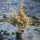 Кустарник с невысокой скоростью роста, в возрасте 10 лет достигает высоты 1м, ширина около 2 - 3м.. Форма кроны - широкораскидистая, главные побеги косорасположены, хвоя игольчатая, серебристо-голубого цвета, с нерегулярно разбросанными кремово-желтыми пятнами. Нуждается в плодородной влажной почве. Рекомендован для цветных элементов композиций.