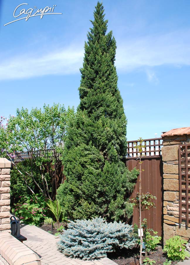 Узко-колоновидное дерево, с годами крона становится несколько расширенной. Высота от 8 до 10 м, ширина – 1,5 – 2 м. Скорость роста умеренно быстрая: в год в высоту прирост составляет около 15 см, в ширину – от 3 до 5 см. Хвоя чешуевидная, светло-зеленая, с эффектным восковым налетом. Солнцелюбив, в то же время переносит полутень. Растение к почвам нетребовательное. Очень устойчив к городским условиям и загрязнённости воздуха. Используется в парках и садах в групповых и одиночных посадках, годится для создания стриженых изгородей.