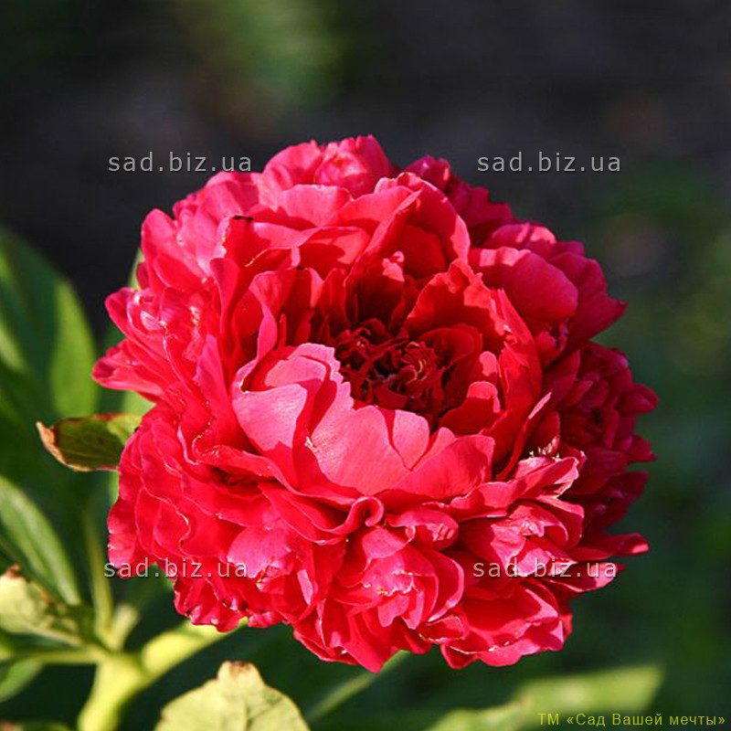 Этот сорт молочноцветкового пиона родом из Сибири и Китая. Его цветы махровые, зацветают одними из первых среди махровых пионов, цветы темно-красного цвета, лепестки блестящие, наружные лепестки крупнее, внутренние короче и меньше по размеру. Лепестки зубчатые, все тычинки переходят в лепестки. Цветки крупные, 13-16см. На цветоносе находится до 3 цветков. Приятный аромат этого сорта просто завораживает. Корни выпуклые, мощные. Стебли, выходящие из корней, слегка одревесневшие. Высота растения 60-90см. В период цветения куст разваливается и требует опоры. Цветение: конец весны - начало лета. Применяются широко в озеленении в сочетании с многолетниками и луковичными. Прекрасно выглядят монопосадки из пионов разных сортов и группы из одного сорта, также можно разместить на фоне газона, вдоль дорожек и ограждений, в виде бордюра.