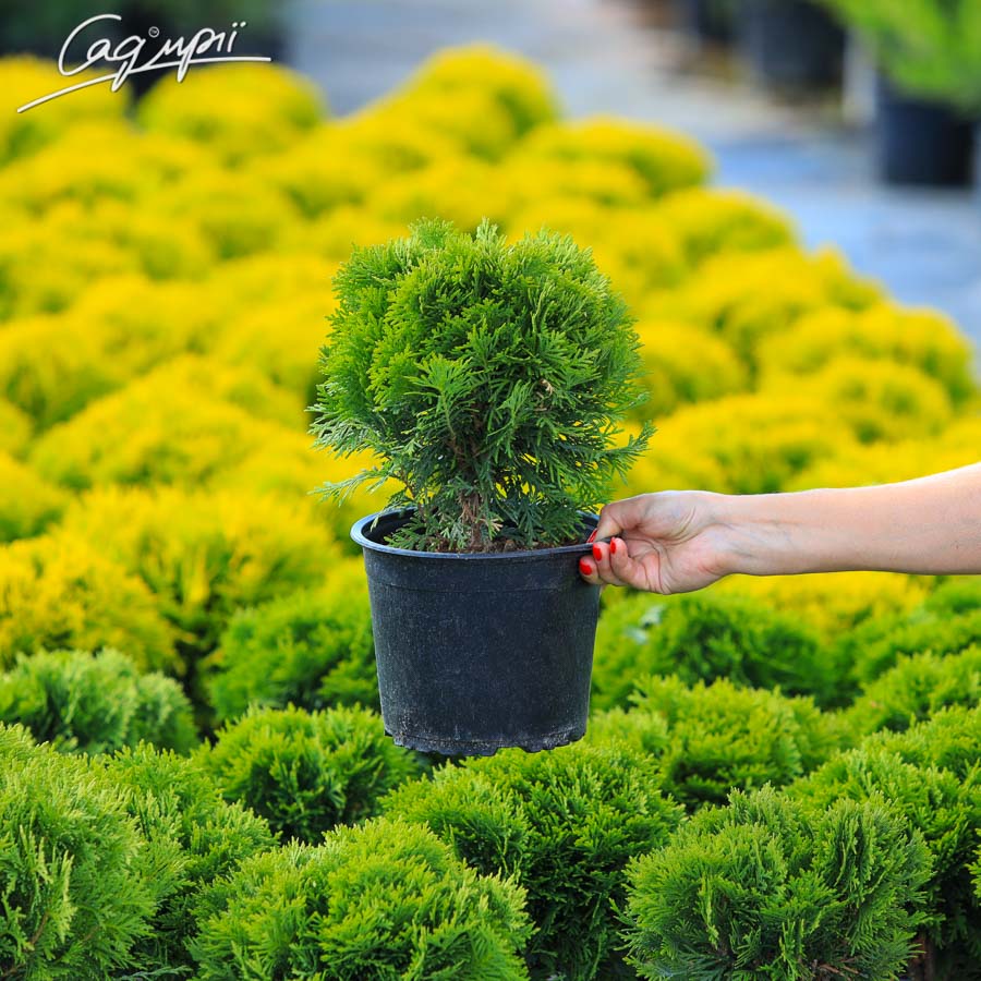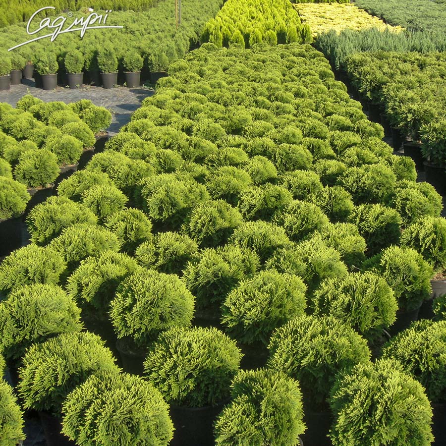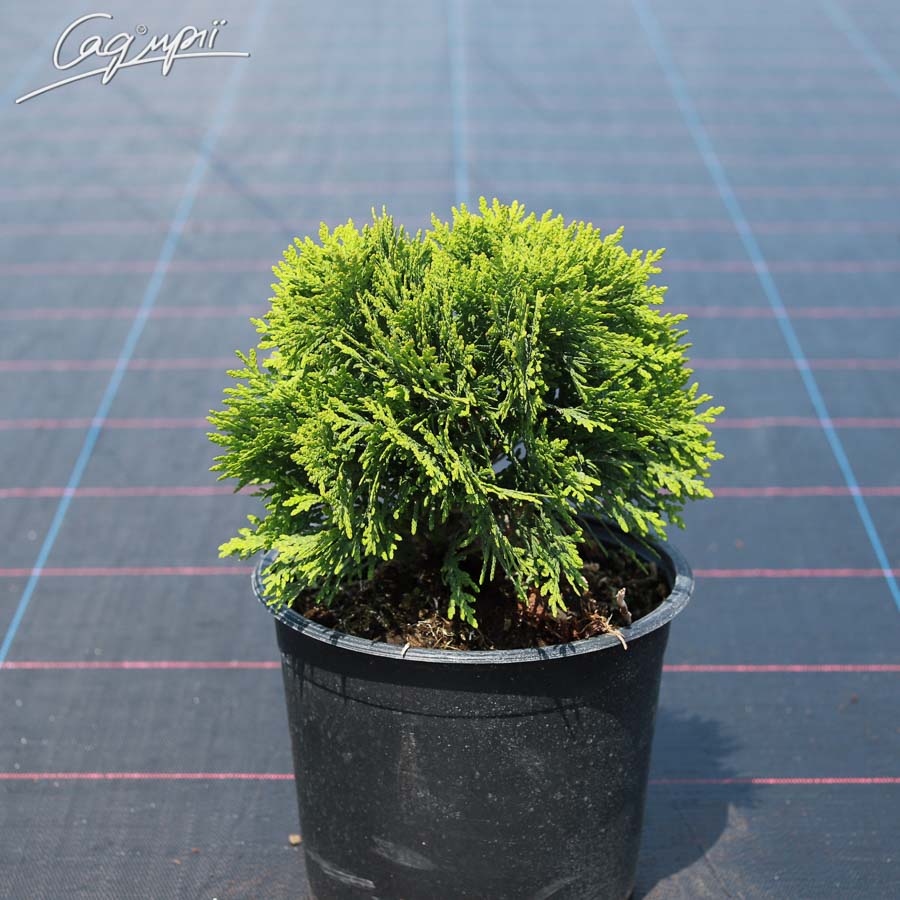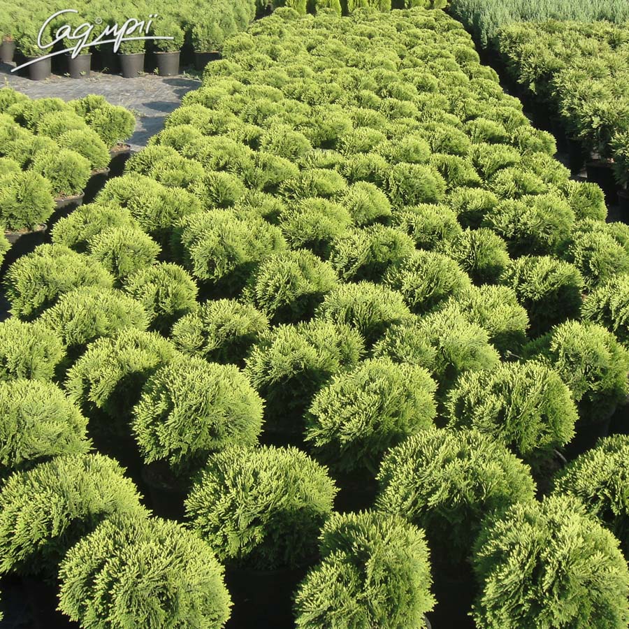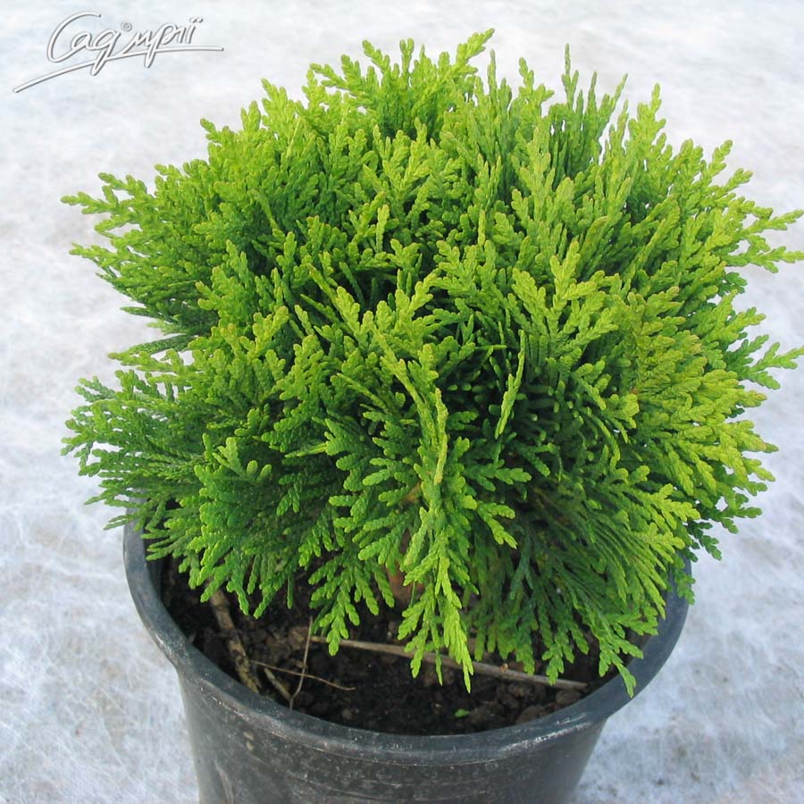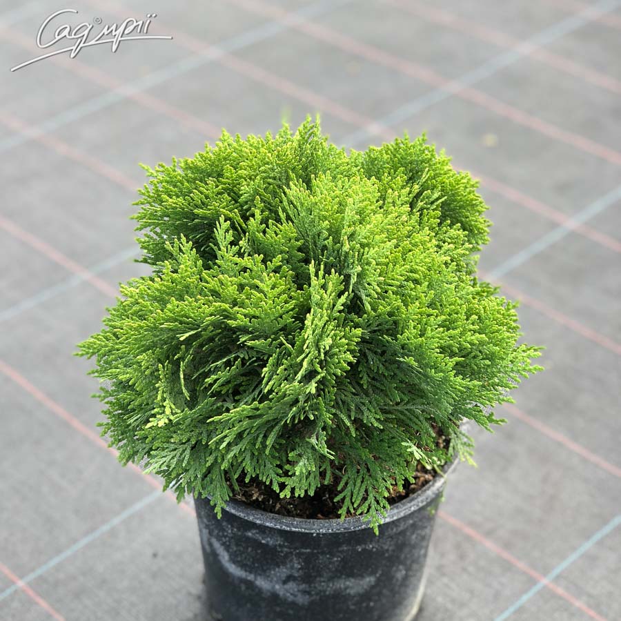 Вечнозелёный небольшой кустарник с округлой, плотной кроной, тонкими хвоинками и вертикальными веточками, очень медленнорастущий. Высота 0,6-0,8 м., ширина до 1 м. Хвоя чешуйчатая, очень густо расположенная, блестящая свеже- зелёная, зимой коричнево- зелёная. Растёт на всех свежих или влажных (сырых), плодородных почвах, от кислых до щелочных. Морозостойка, теневынослива, нетребовательная и очень здоровая, выносит городские условия. Используется в составе композиций как шаровидный элемент, для создания низкорослых живых изгородей и аллей.