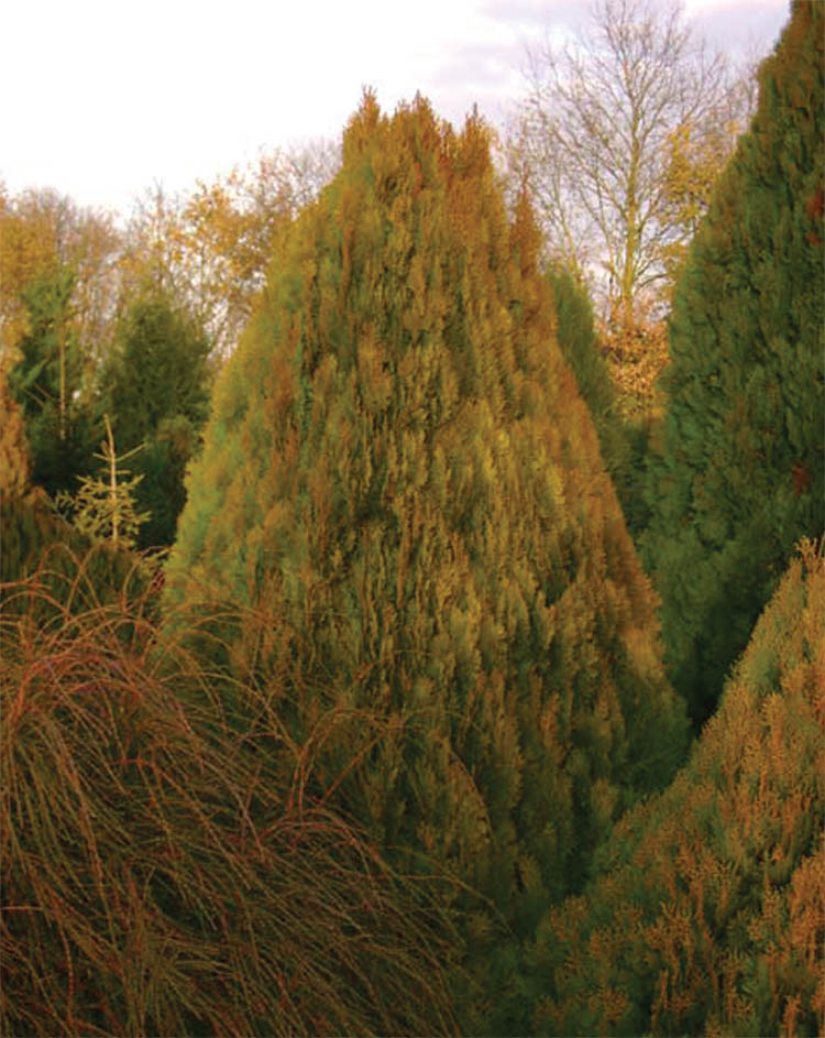 вічнозелене деревце з коллоновідной формою крони. Пагони вертикально розташовані, віялоподібно розгалужені, ніжного золотисто – жовтого забарвлення. Зимова забарвлення більш насиченого оранжево-рудого відтінку. Швидкість росту помірна. Досягає висоти 2,5-3 м., в ширину до 0,7 – 1 м. віддає перевагу сонячним або напівтінисті місця, при посадці в тіні золотисто - жовте забарвлення хвої змінює на свіжо-зелену. Росте на всіх свіжих, вологих, помірно багатих поживними речовинами грунтах, від слабо кислих до сильно лужних. Морозостійка, але вимагає захищених від вітрів місць. Чутлива до нестачі вологи в грунті, але і надлишок вологи буде негативно позначатися на кореневій системі рослини. Використовується в якості яскравого колірного акценту в складі різних ландшафтних композицій, в якості алей, живоплотів.