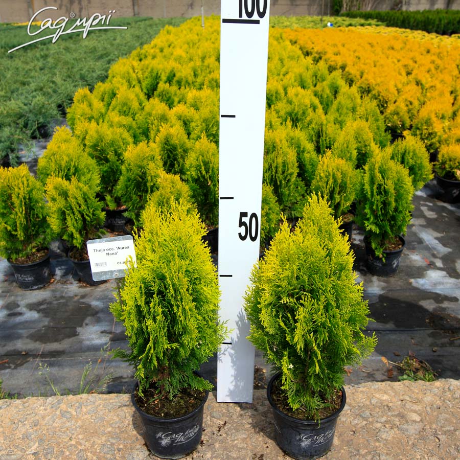 Тую східну' Aurea Nana ' найкраще висаджувати на сонячних місцях, в тіні золотиста забарвлення хвої придбає зелено-лимонний забарвлення. Рослини вирощені в контейнері перед посадкою необхідно ретельно полити. Посадкова яма повинна бути більше контейнера в 1,5-2 рази. При близькому заляганні грунтових вод або важкому грунті необхідно влаштувати дренаж з керамзиту або гравію шаром 20 см.заповнити посадкову яму краще сумішшю вийнятого грунту і торфу в співвідношенні 1:1. У суміш бажано додати комплексне мінеральне добриво в співвідношенні 5 гр. на 1 літр суміші. Цей перехідний шар сприятиме кращому проростанню коренів в грунт. Коренева шийка рослини повинна бути на рівні землі. Посаджене рослина ретельно пролити водою. Пристовбурні кола бажано замульчувати корою або торфом.