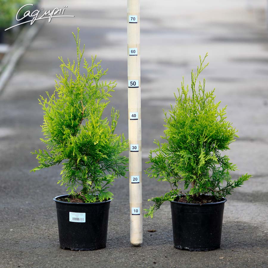 різновид відомої туї західної. Швидкозростаючий конусоподібний хвойний чагарник, висотою близько 3м.Хвоя золотисто-жовта, практично не змінює кольору взимку. До грунтів невимоглива, але вважає за краще свіжі, досить зволожені родючі. Може добре рости як на світлі, так і в півтіні, але на сонячних місцях колір хвої більш яскравий. Морозостійкий. Від опіків ранньою весною практично не страждає.