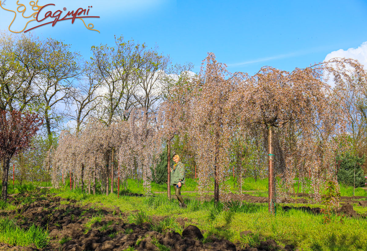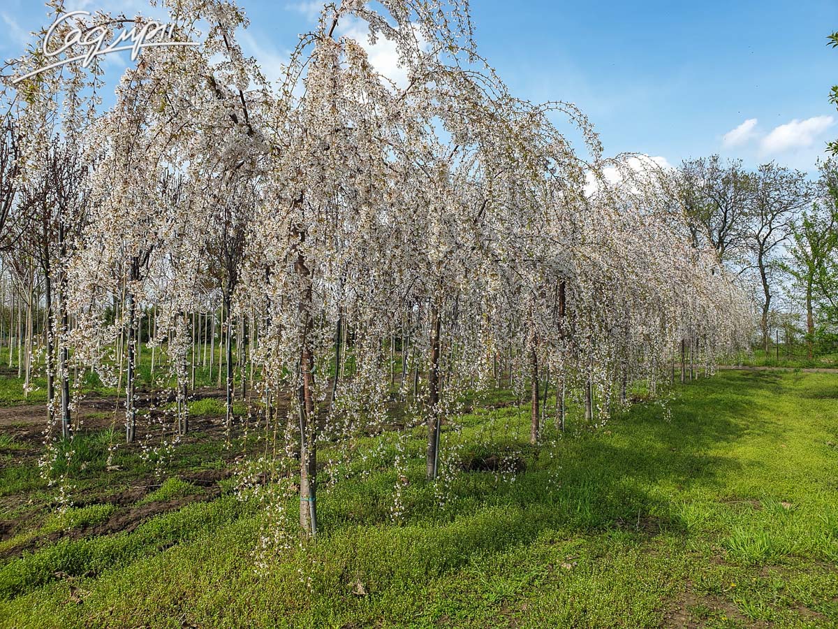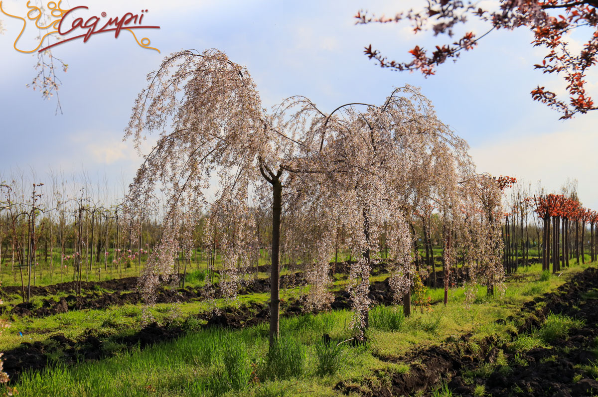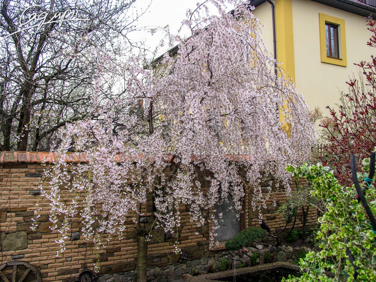 Листопадне невелике дерево з широкою зонічною кроною і звисаючим каскадом кінчиками гілок. Швидкість росту низька. Досягає висоти 3-4 м, ширина до 4 м, річний приріст 20-30 см. Листя трохи ширше, ніж у інших сакур. Квіти прості, діаметром до 2 см, з'являються у великій кількості в квітні. Світлолюбива. До грунтів невимоглива, росте на всіх культивованих садових грунтах, потребує свіжих, вологих, багатих поживними речовинами, піщано-глиністих субстратів, від нейтральних до сильно лужних.