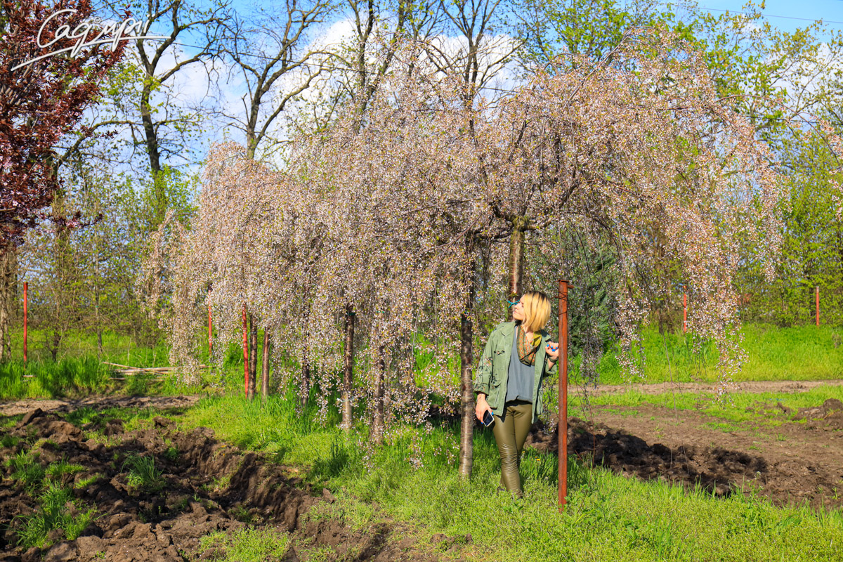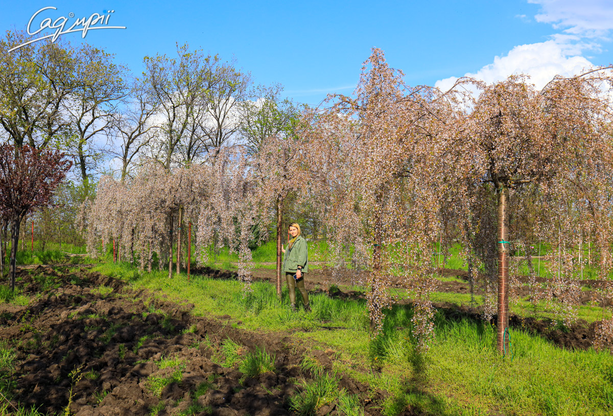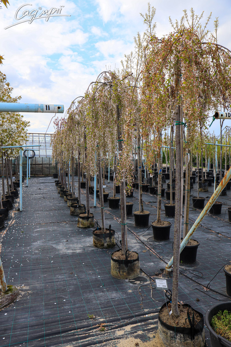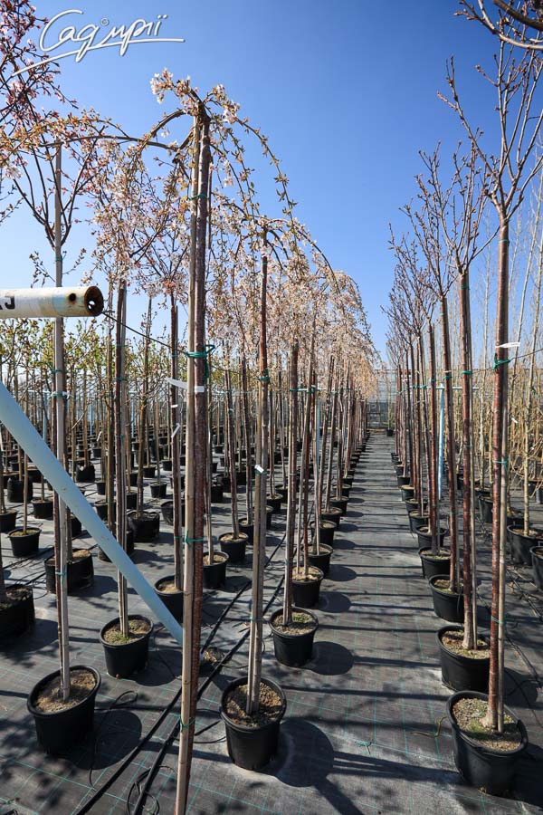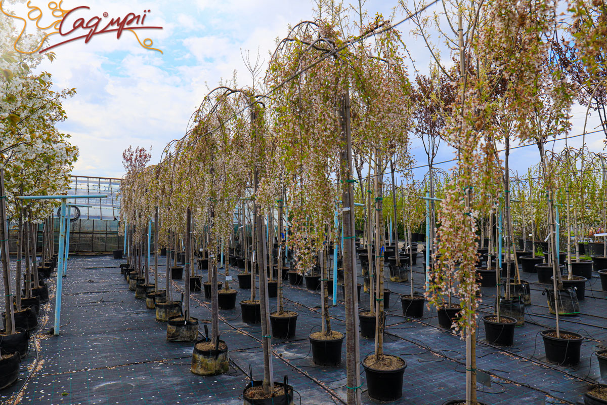 Листопадне невелике дерево з широкою зонічною кроною і звисаючим каскадом кінчиками гілок. Швидкість росту низька. Досягає висоти 3-4 м, ширина до 4 м, річний приріст 20-30 см. Листя трохи ширше, ніж у інших сакур. Квіти прості, діаметром до 2 см, з'являються у великій кількості в квітні. Світлолюбива. До грунтів невимоглива, росте на всіх культивованих садових грунтах, потребує свіжих, вологих, багатих поживними речовинами, піщано-глиністих субстратів, від нейтральних до сильно лужних.